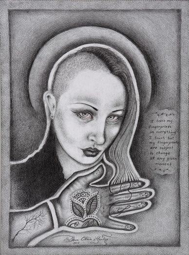 Fingerprints. Graphite, Charcoal, Colored Pencil and Ink.