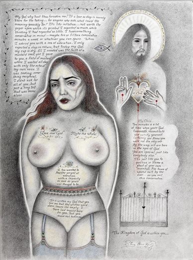 The Failed Seduction of God. Graphite, Charcoal, Colored Pencil and Ink.