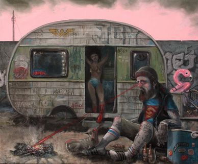 Super Hero Series BBQ, 51x60, Acrylic on linen.