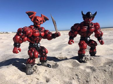 When we first started we were hand casting the figures out of hard rubber. The demand eventually outgrew the supply possibilities so we had to outsource the production to a soft vinyl factory in Brazil. The process still begins with my sculptures, which are then 3D scanned and tooled for optimal vinyl casting. We assemble and hand paint them in our studio, and also give them capes, accessories and packaging. The original rubber Musculoids have become a highly sought after collectible on the secondary market. We do still make small runs of rubber figures, but they are very limited and tend to sell out quickly.